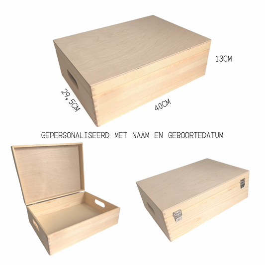 SET gepersonaliseerde opgroeibox met naam en geboortedatum incl. toebehoren - transferdruk